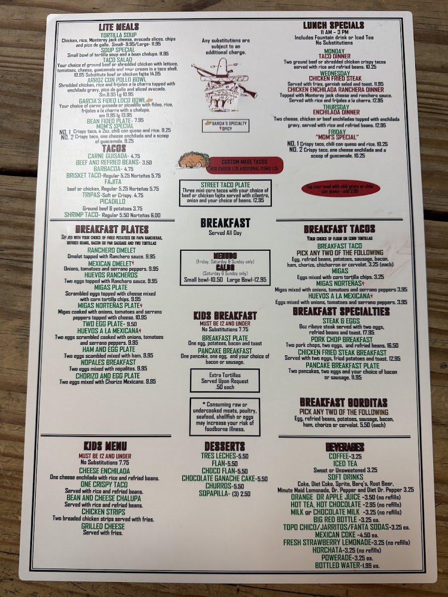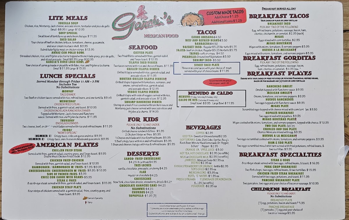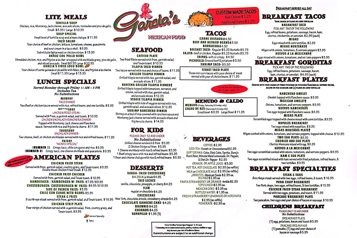 The menu accommodates casual dining and quick orders, making it suitable for different mealtimes from a morning coffee or brunch to a full dinner. Customers can expect a variety of protein choices, vegetarian plates, and traditional Mexican flavors throughout the menu.