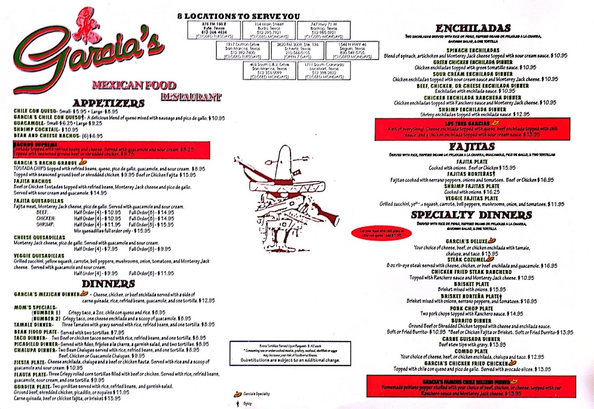 The menu offers a variety of traditional Mexican and Latin American dishes suitable for breakfast, lunch, and dinner. It features a range of appetizers, main courses, and desserts, as well as a selection of beverages including margaritas.